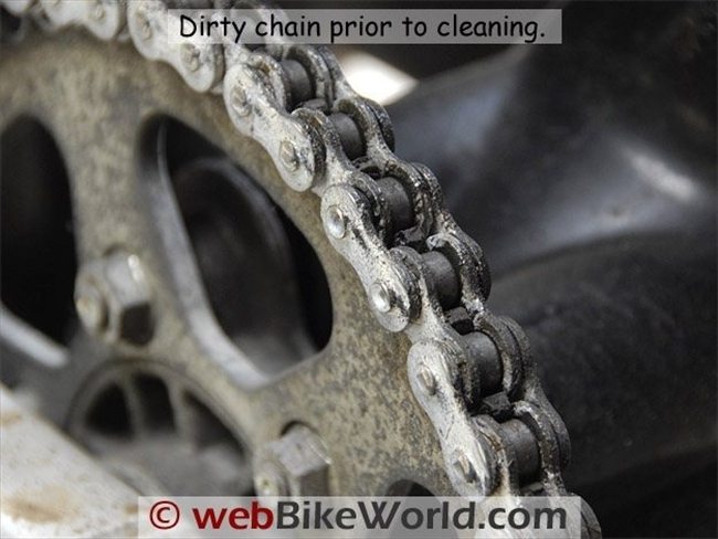 Cleaning a motorcycle chain is a dirty job, but somebody has to do it!