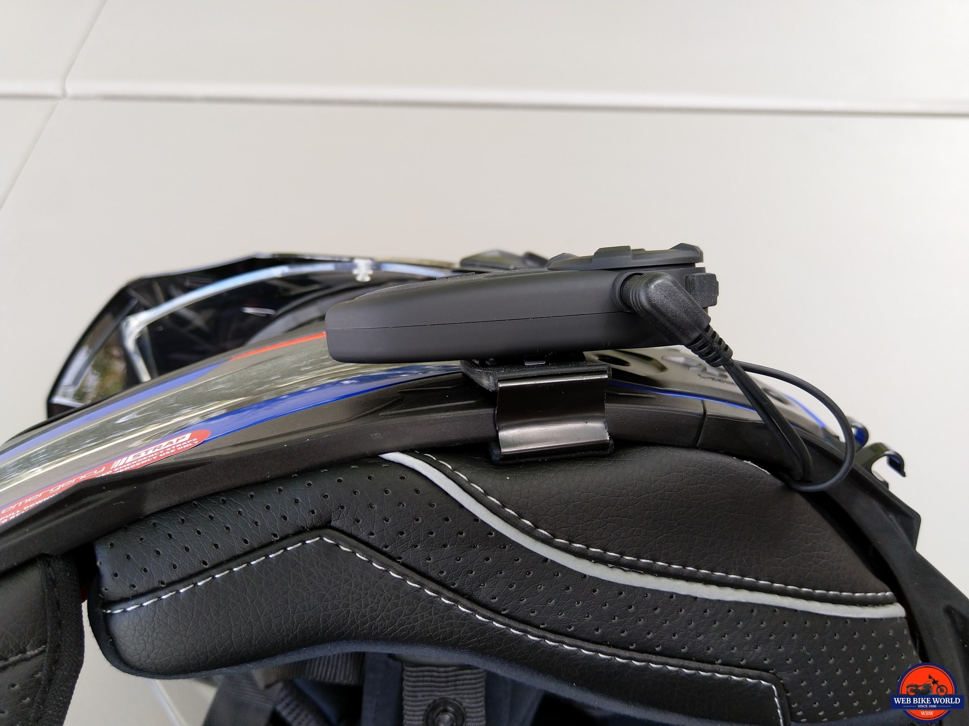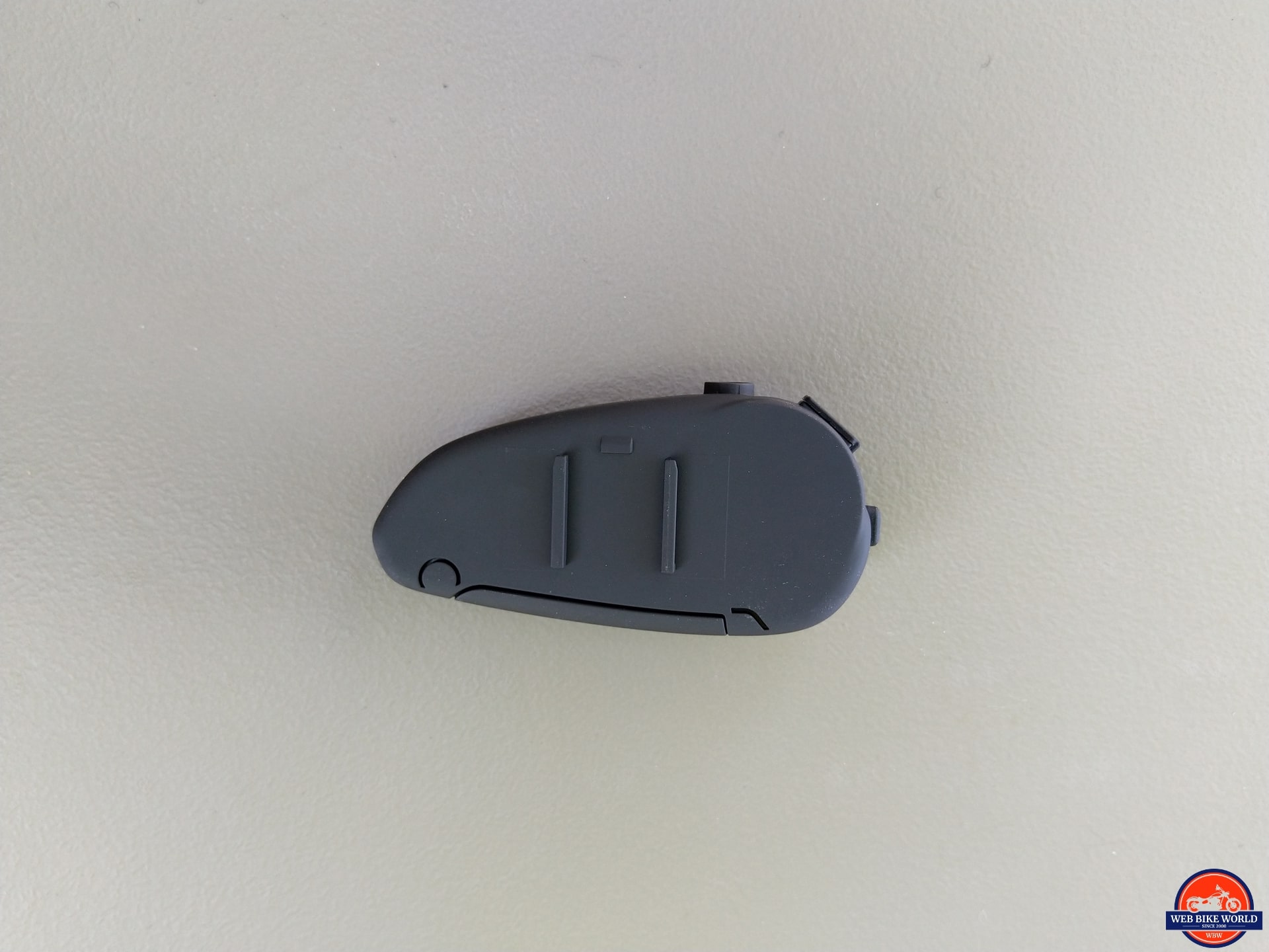 The clip mount is positioned so that when the module is slipped and clicked into place, the assembly just clears the (obtrusive) raised NEXX BT system cover. A non-slip pad placed underneath the mount on the outer side minimizes movement while protecting the helmet’s finish.