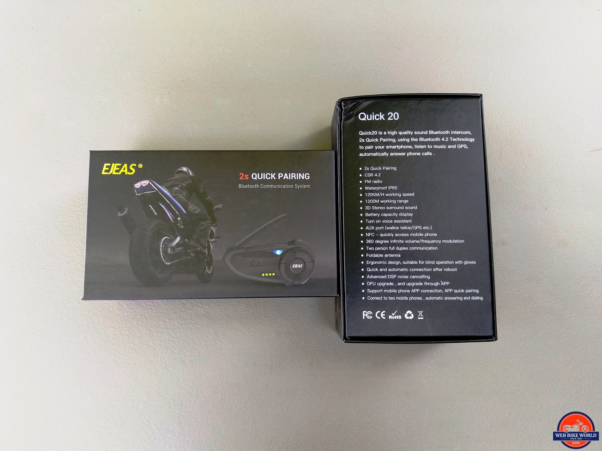 Featuring Bluetooth v4.2 and a CSR chipset, the Quick 20 supports two (2) riders with full-duplex (intercom) communications, with a claimed range of up to 1200m (3,937ft or 1312yds), otherwise known as three-quarters of a mile.