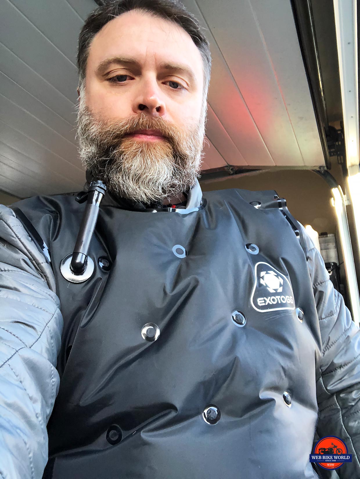 Greg wasn’t overly fond of the Exotogg looks and I got some good-natured ribbing from friends when I posted a photo of myself wearing it on my FaceBook profile. Unlike the other thermal vests on the market, you couldn’t wear it out and about off the motorcycle without drawing a few quizzical looks unless it was covered. It is quite unconventional looking and if I’m completely honest makes me chuckle a bit and crack jokes while wearing it.
