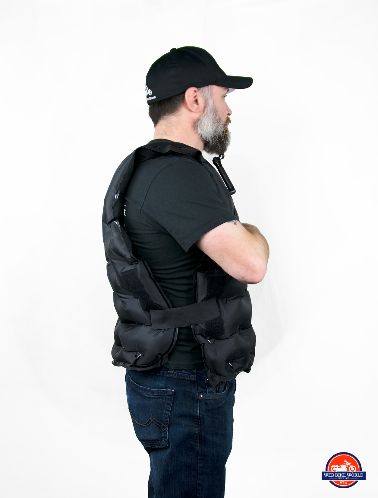 I submerged the Exotogg underwater and located a pinhole leak just beside one of the “dimples”. I don’t know whether I caused the leak or it came that way, but it only leaks when it’s squeezed and the vest is fully inflated. It held air while I wore it on the road, but then again I didn’t have it anywhere near fully inflated while road testing.