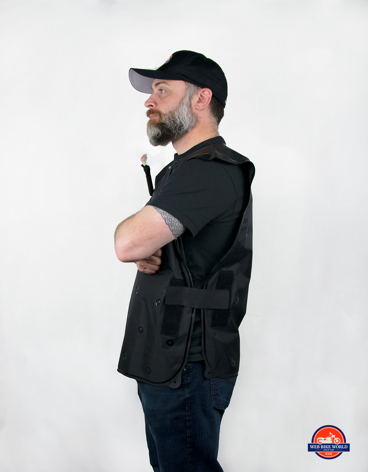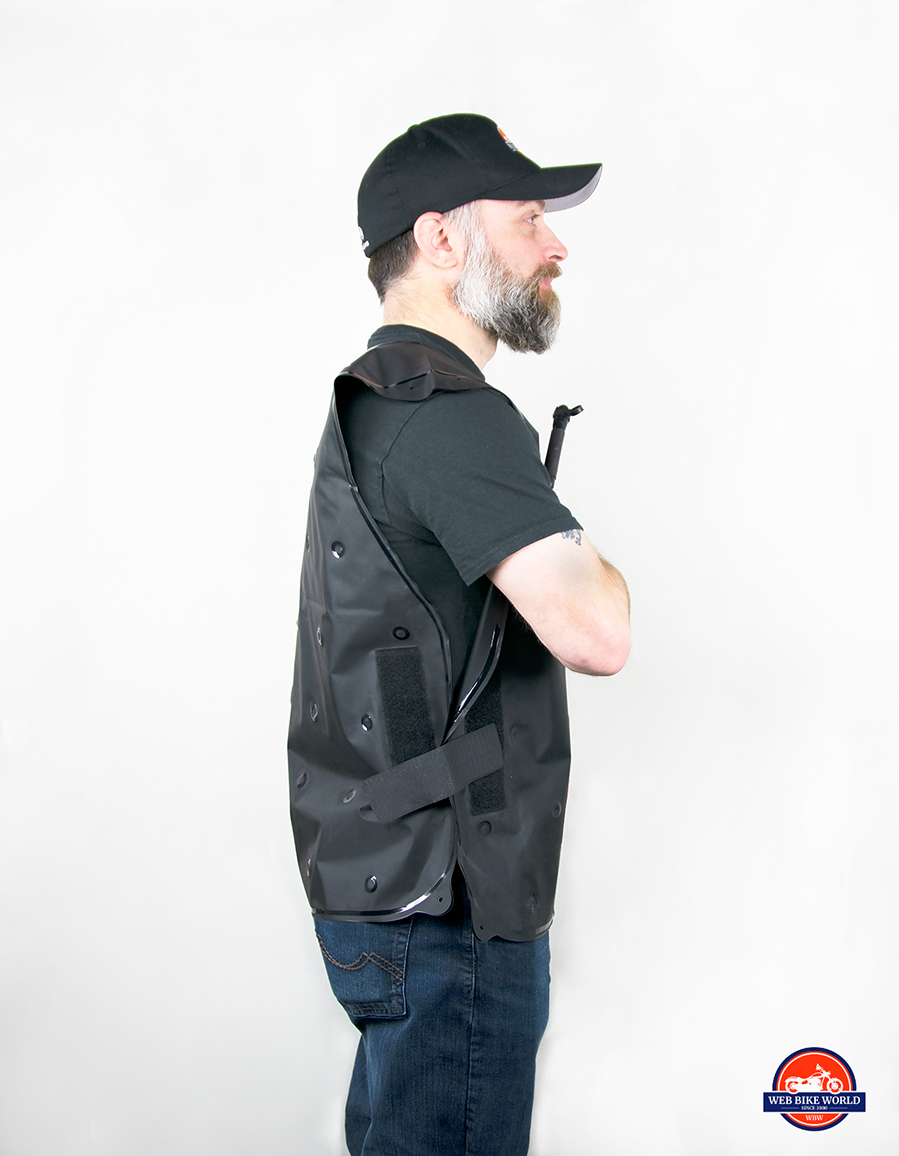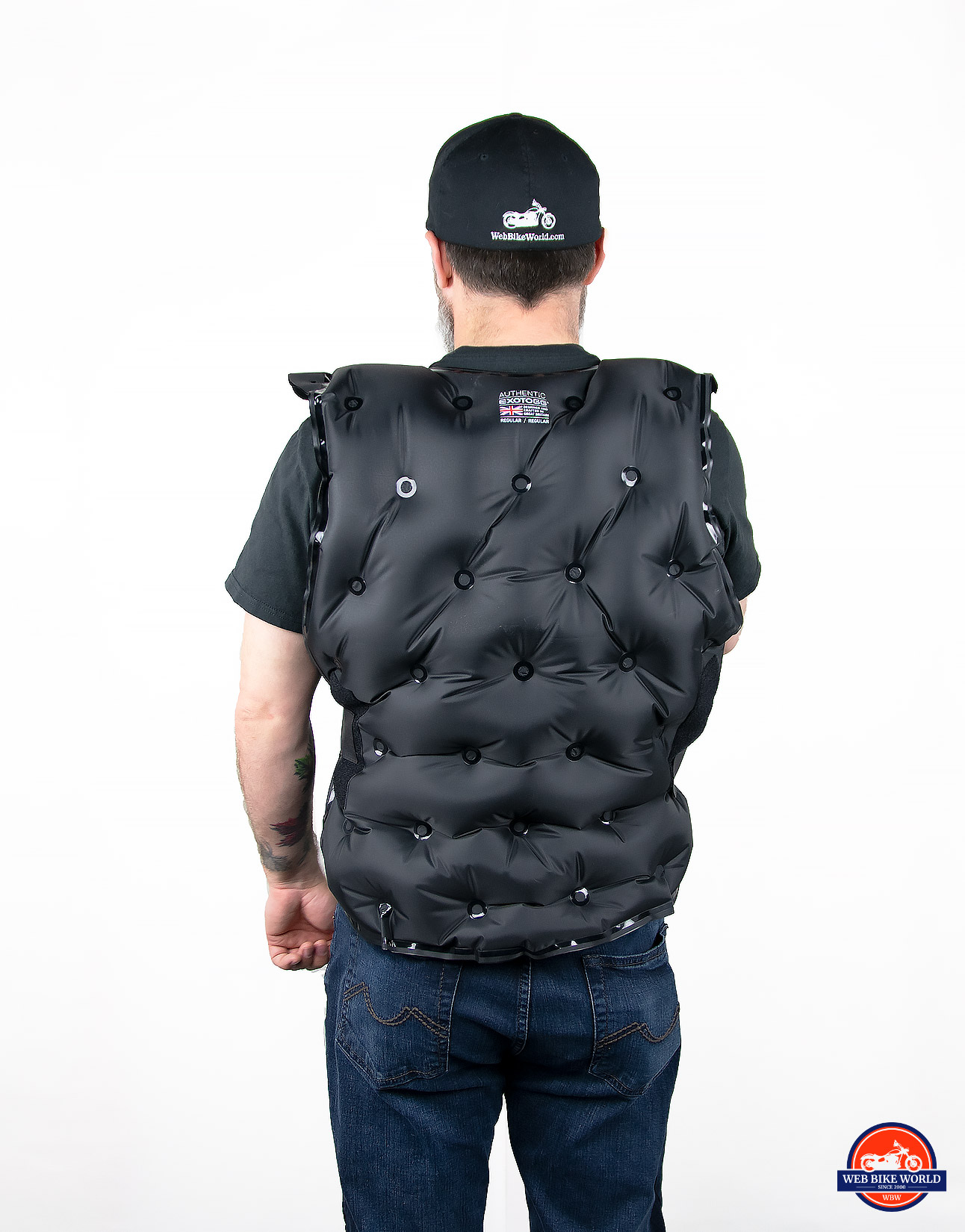 The Exotogg feels better under a non-motorcycle jacket that fits more loosely. That allows you to feel unencumbered by air being forced from the tight-fitting waist area up to gather around your chest, neck, and shoulders.