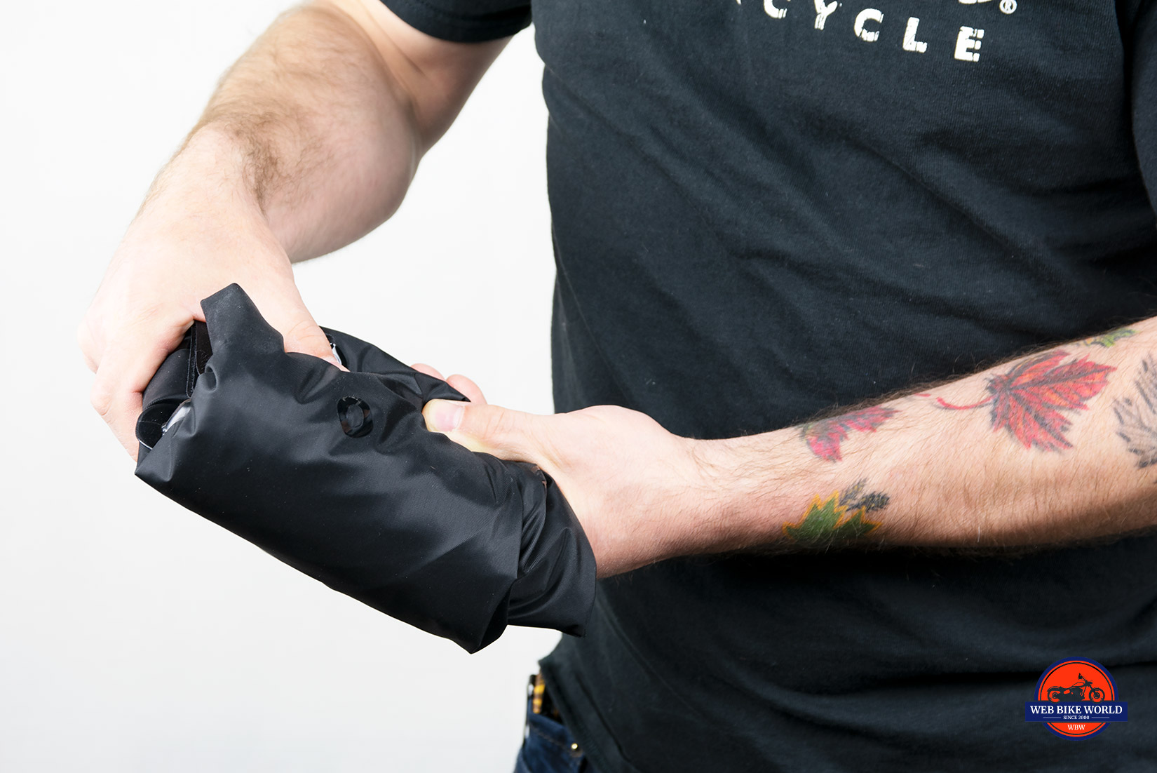 The website for Exotogg claims it can be used as a camping seat, air mattress, or pillow among other things. That excited me because the bedroll I currently use when motorcycle camping is very compact but does still take up space on the bike. If I can leave it at home and wear my bedroll in the form of the Exotogg instead (or just store it in my coat pocket until I need it) that’s a huge win!