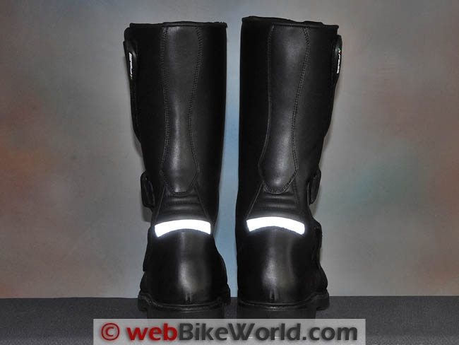A full-width retro-reflective strip is stitched onto the back of the boot between the lower and upper (padded) back areas of the boot.