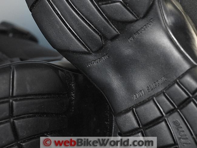 What is important though for motorcycle boots is the sticky-factor; that is, the amount of grip the soles provide as you’re pushing the bike with your feet.