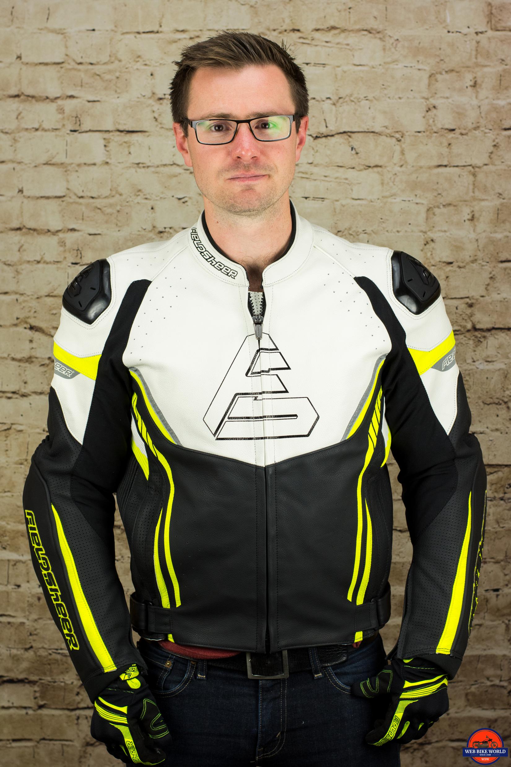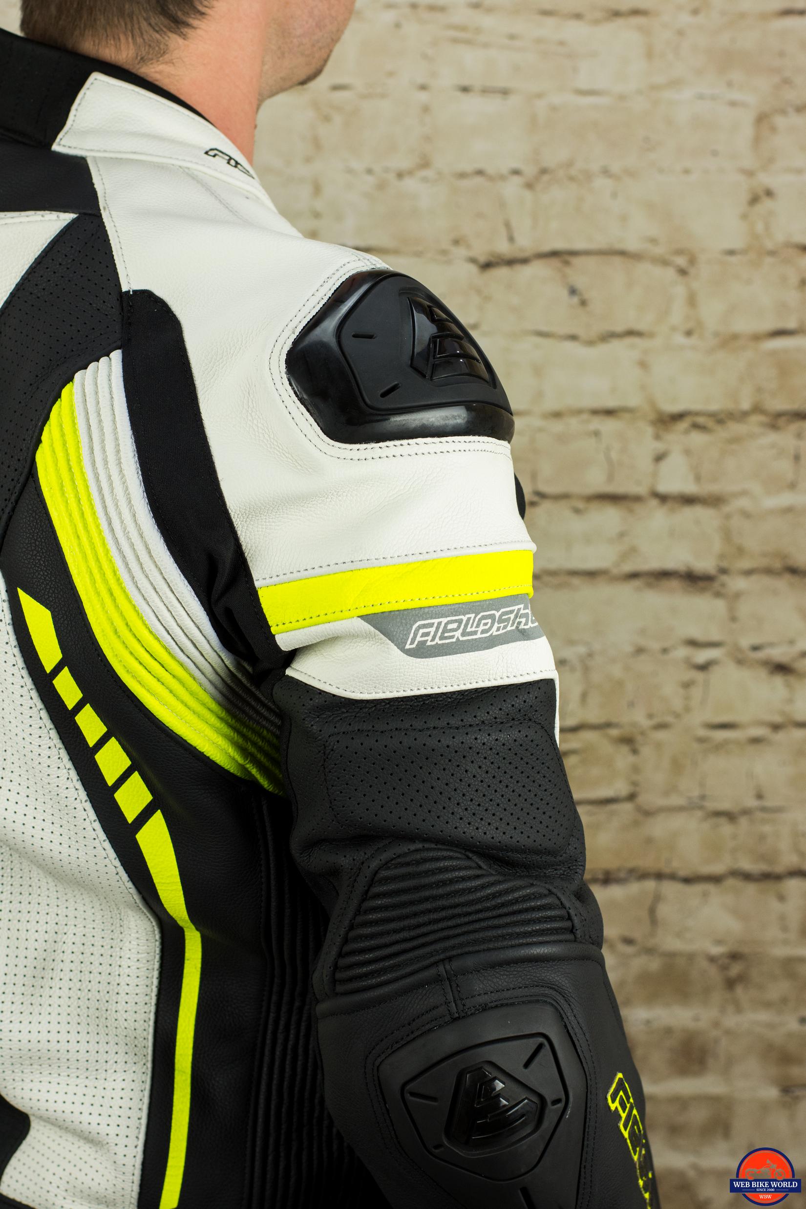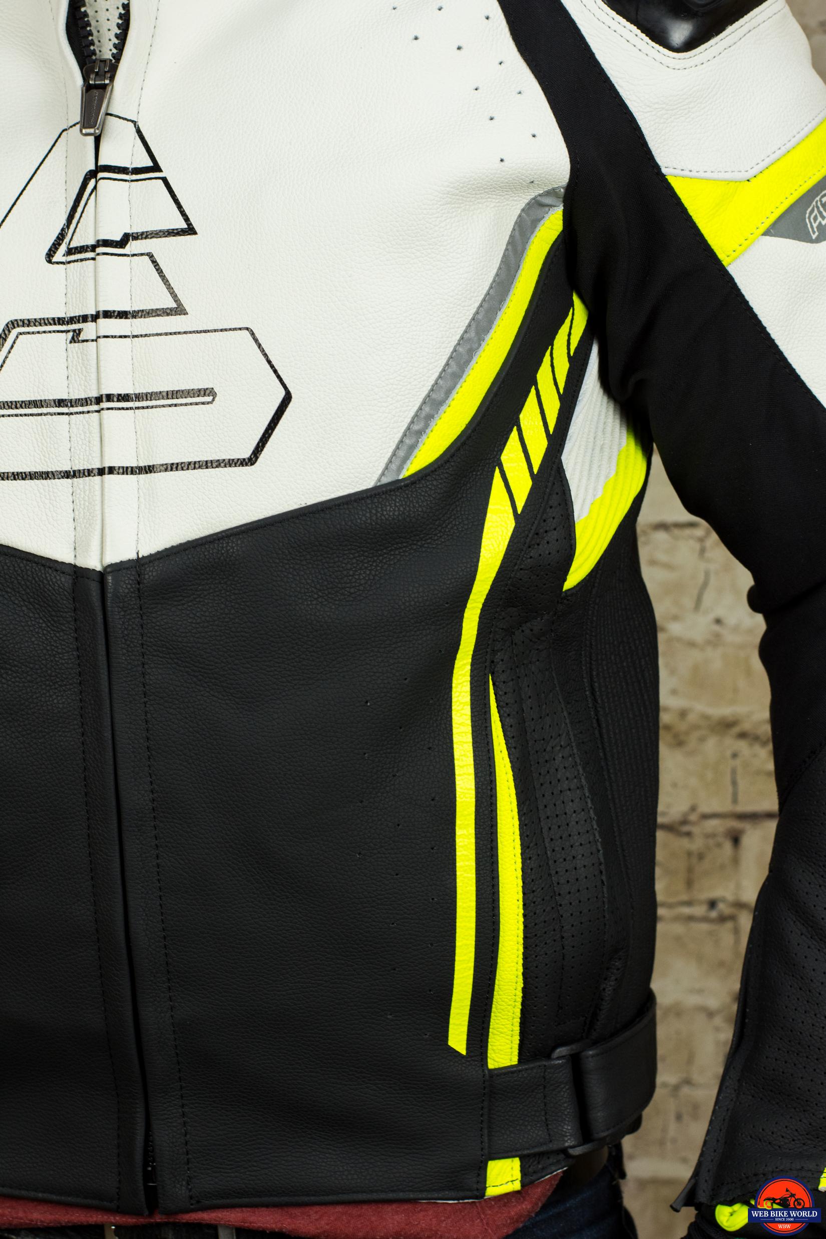 The white/black/yellow scheme is quite aggressive and badass looking; high-visibility strips are found on both arms and the sides of the front/back sections. It very much looks the part and stands right next to popular jackets in this segment, such as the Alpinestars Atem, Dainese Racing 3, and Scorpion Clutch.