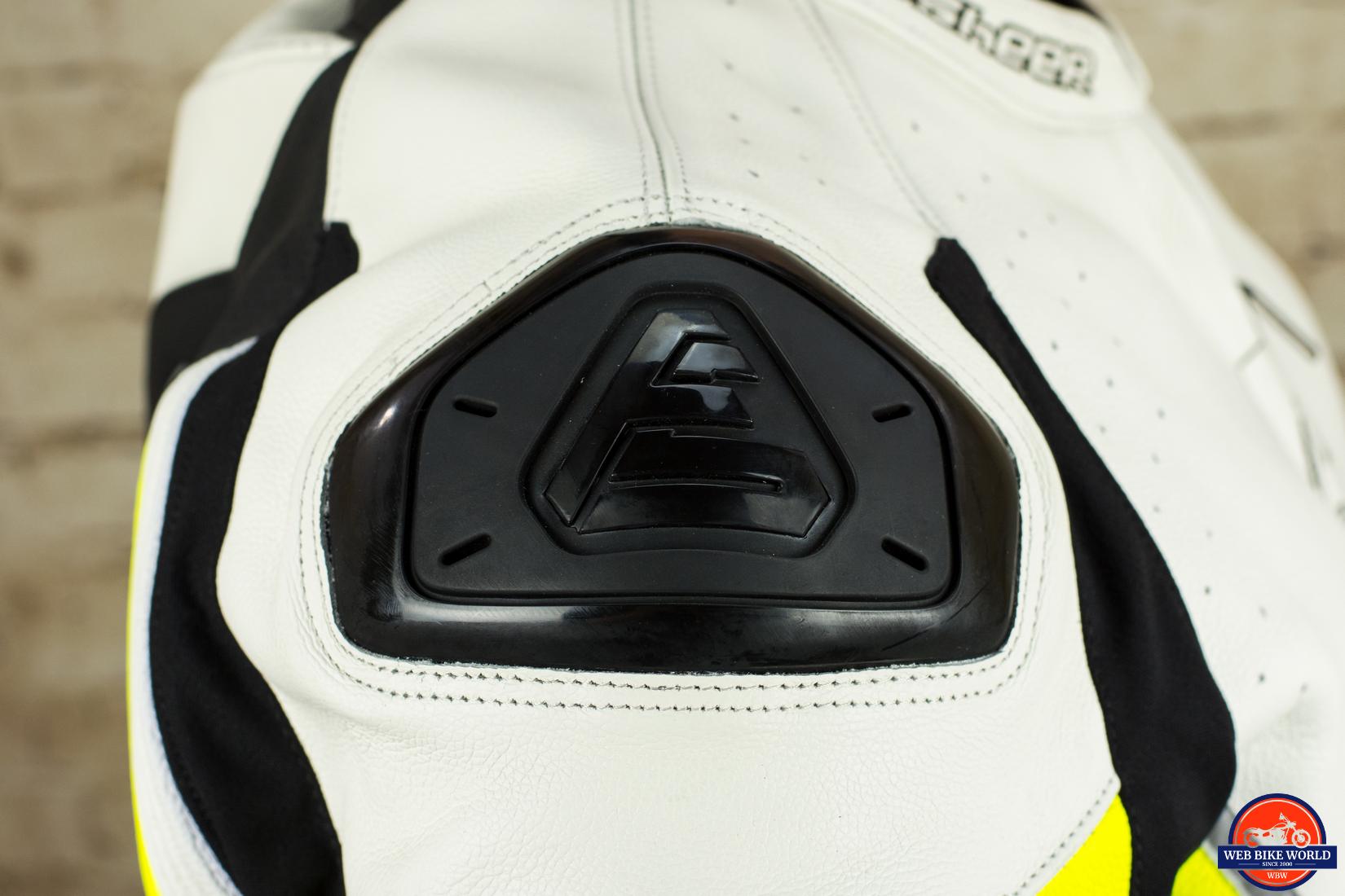 The Suzuka is all leather – even the stretch panels on the torso, arms, and back. Integrated into the leather is CE level 2 armor in the shoulders/elbows, with reinforcing plastic armor surrounding them to supplement their protection and impact resistance.