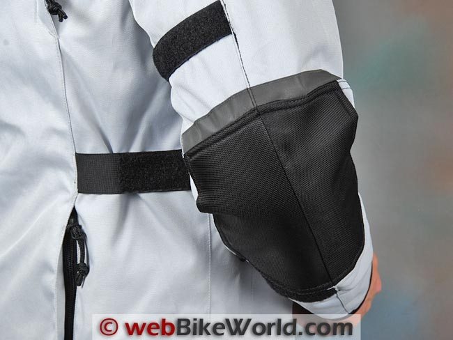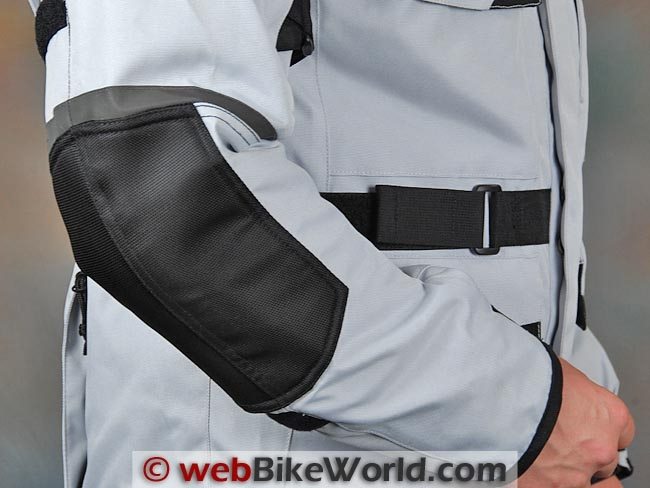 The jacket has CE-approved armor in the shoulders and elbows, of the semi-hard variety. It doesn’t have a hard outer shell but feels fairly substantial. The outer part of the shell at the shoulders and elbows is covered in the added thick abrasion-resistant fabric I mentioned earlier.