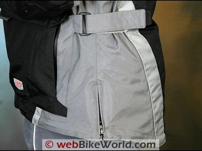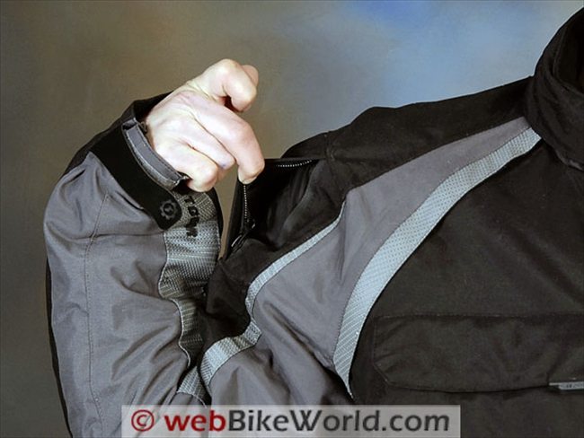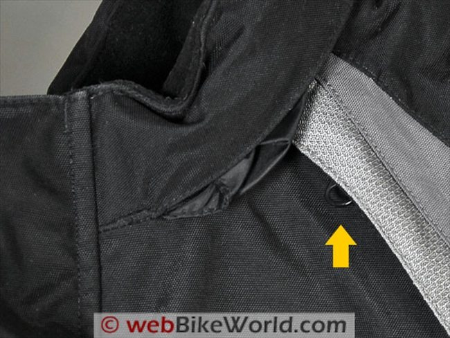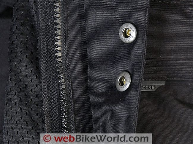 The Firstgear TPG Rainier has…none. This is a huge surprise to me — the jacket has no wind-blocking flaps behind the front zipper? Strange…