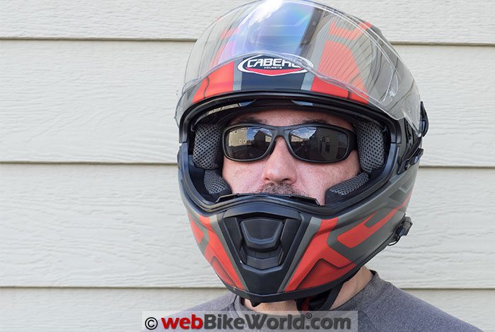 One issue that I ran into is that the sunglasses can fog up in the right conditions inside a helmet with the visor down. This is a common issue that affects most sunglasses and internal helmet sun visors and there are chemical treatments one can use to mitigate this.