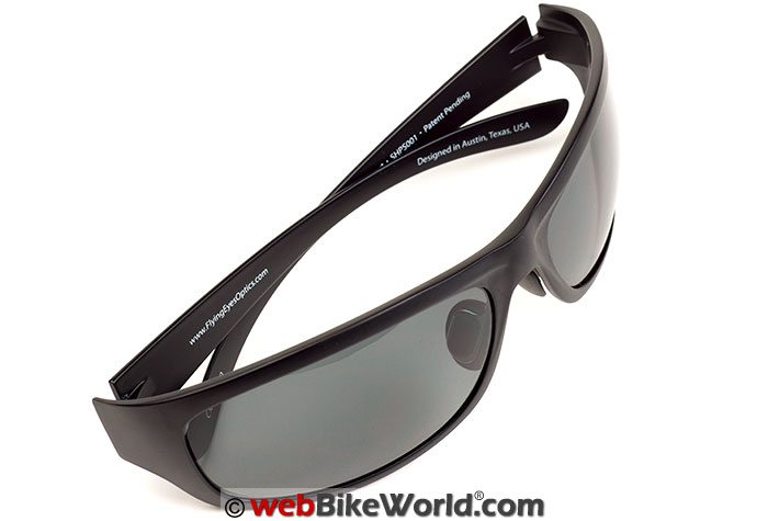 The key design point to Flying Eyes Optics sunglasses was to make very thin temples that would remain comfortable under the typical over-the-ear headset. At the same time the ultra-thin temples don’t foul the sound isolation provided by the surrounding cushion around the ears.