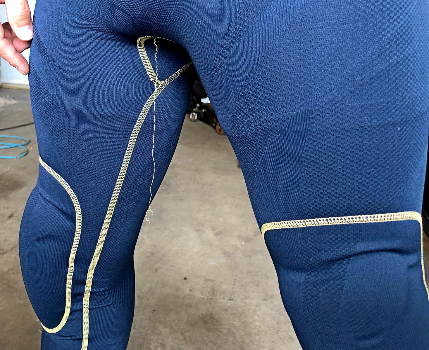 Just as I was about to laud this Sport Suit as a can’t miss success story I found a thread hanging down from the seam running right through the groin area. I guess all that noise actually did produce a failure after all. This happened after only washing the suit once.