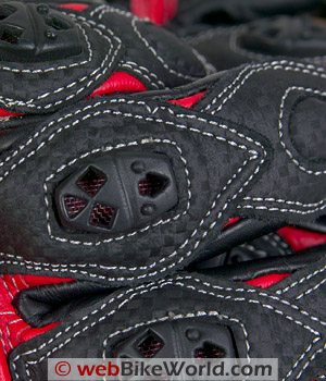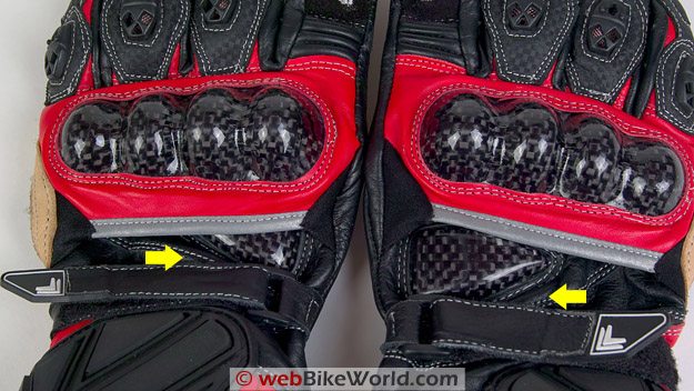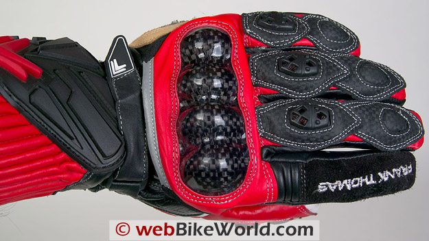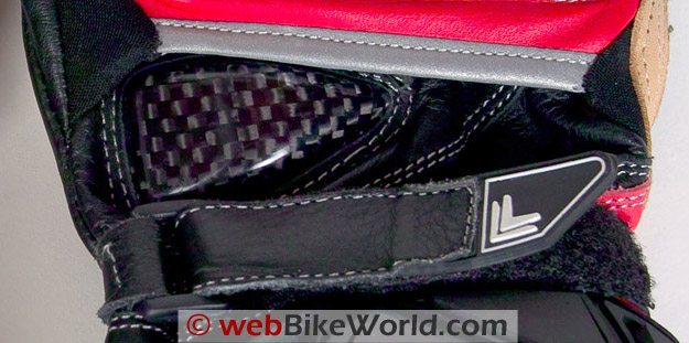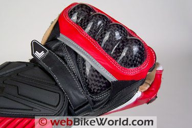 As you can see in the photos, there are a several protective features on these gloves. To start, a large carbon fiber molded protector over the knuckles should offer good protection. The downside is that this type of carbon fiber protector can be uncomfortable if not molded properly.