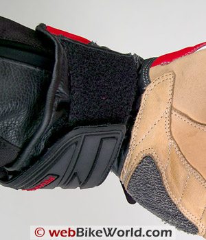 The wrist closure strap that helps keep the gloves from sliding off in a crash is also secured with hook and loop fastener that actually has a decent sized contact area. What I don’t like is the placement of the strap being on top of the wrist where it can get bunched up as the wrist is rolled upward, which happens when rolling on the throttle. This is not an uncommon way to place this strap, but having worn designs that place the strap under the wrist I may be a bit spoiled.