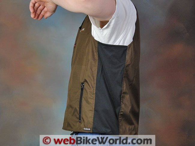 The main point is that the design of this vest is a real advantage for motorcycle use because, for all practical purposes, it has zero bulk and zero weight, yet it provides wireless warmth.