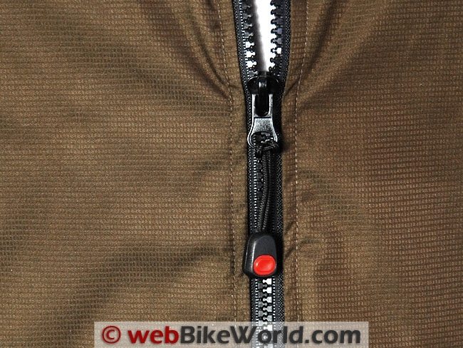 This is a real advantage for wearing the vest under a motorcycle jacket. Just to give you an idea of how thin the vest is, the zipper pull, including the runner is 10 mm thick, 10 times as thick as the body of the vest.