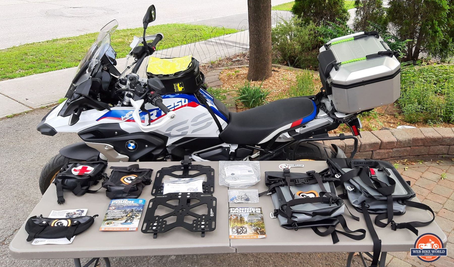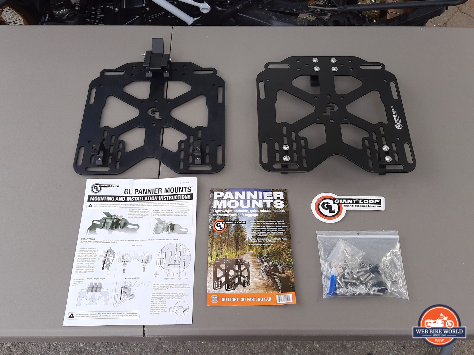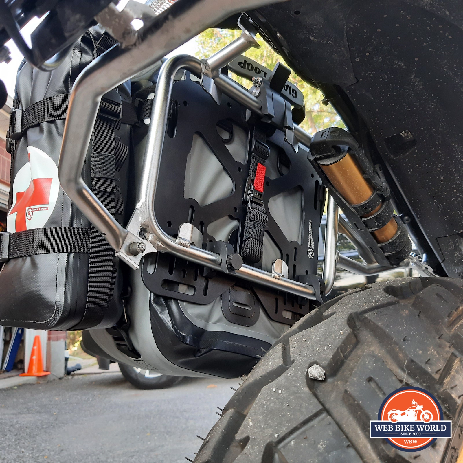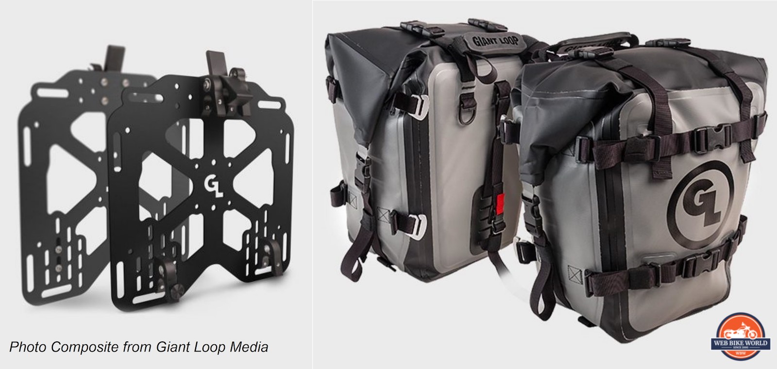 So the Giant Loop products covered in this first of three related reviews are the GL Pannier Mount and BMW GS ADV Adapter Kits, the GL MotoTrekk Panniers, and the GL Hot Springs Heat Shield accessory.