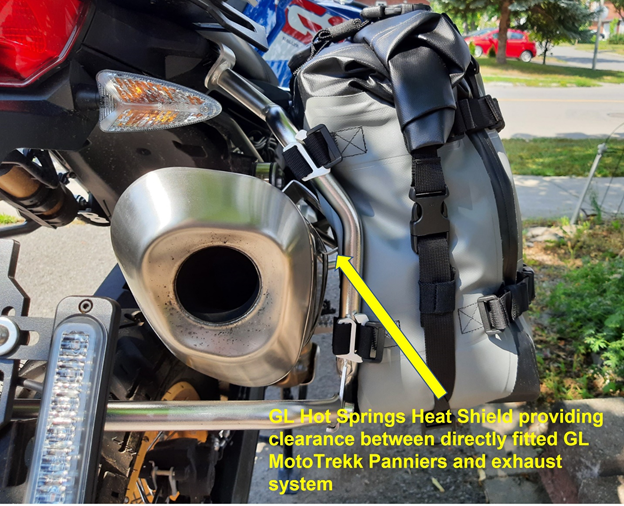 The kits provide a set of offset brackets so the exhaust-side GL Pannier Mount sits vertically providing a flat mounting surface for side bags. See Installation Notes for more details.