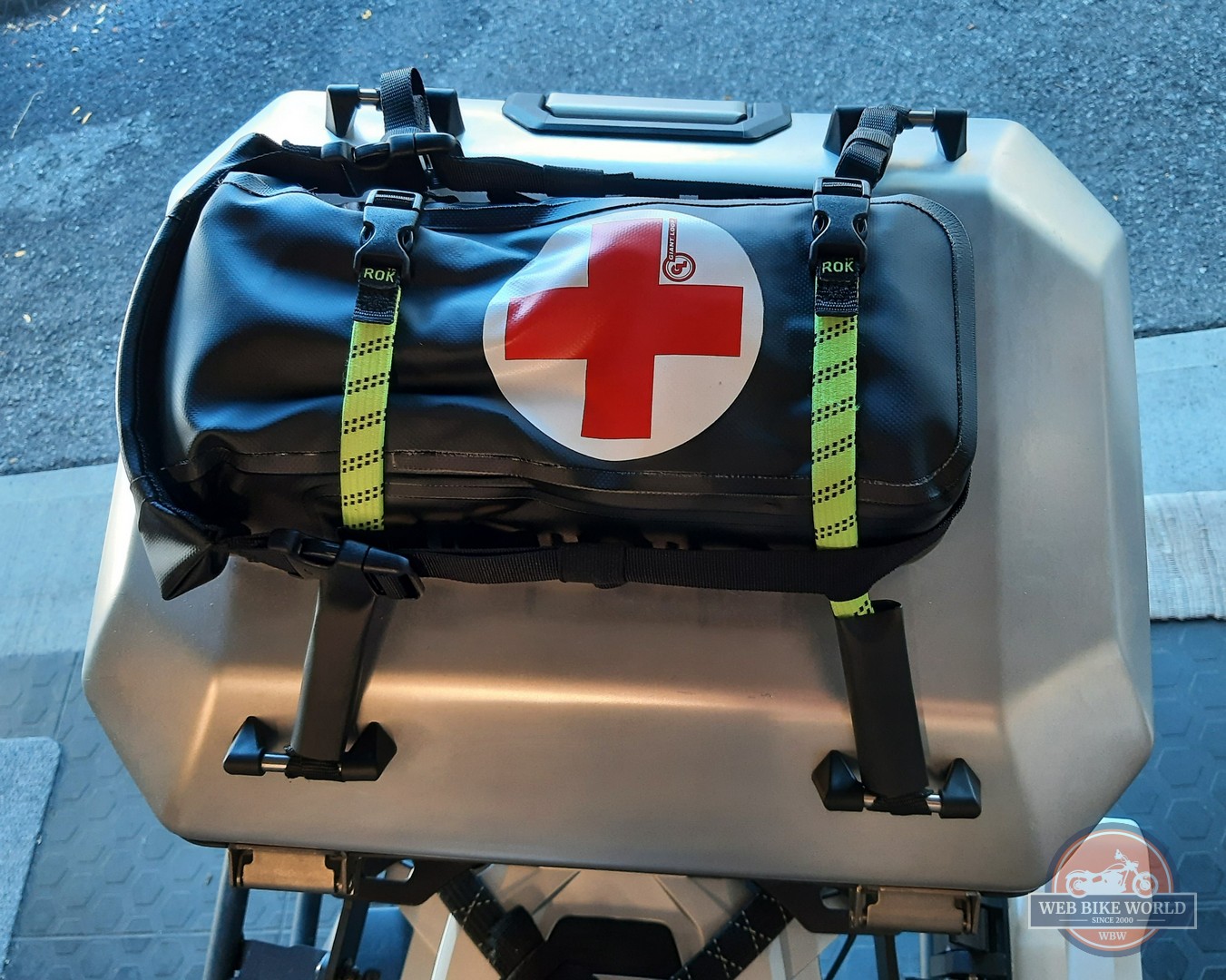 The FA Possibles always goes along whether any other luggage, hard, soft, or otherwise is taken and with the hard side cases and/or top case in use, the FA Possibles sits secured on top of the lid. Fortunately, it nor its contents have not (yet) been needed this season…