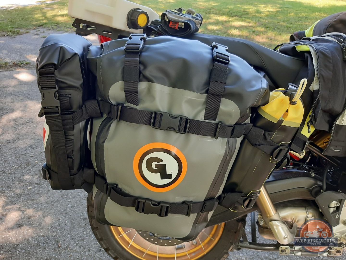 As identified in the recently submitted GL Pannier Mounts and MotoTrekk Panniers review, a big box of Giant Loop goodies arrived early June this year.