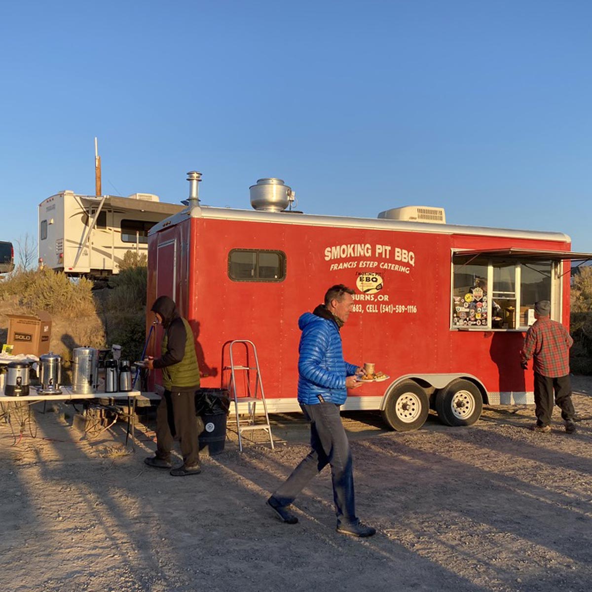 Microbrew beer and other adult beverages, plus coffee, water and soft drinks and snacks.
