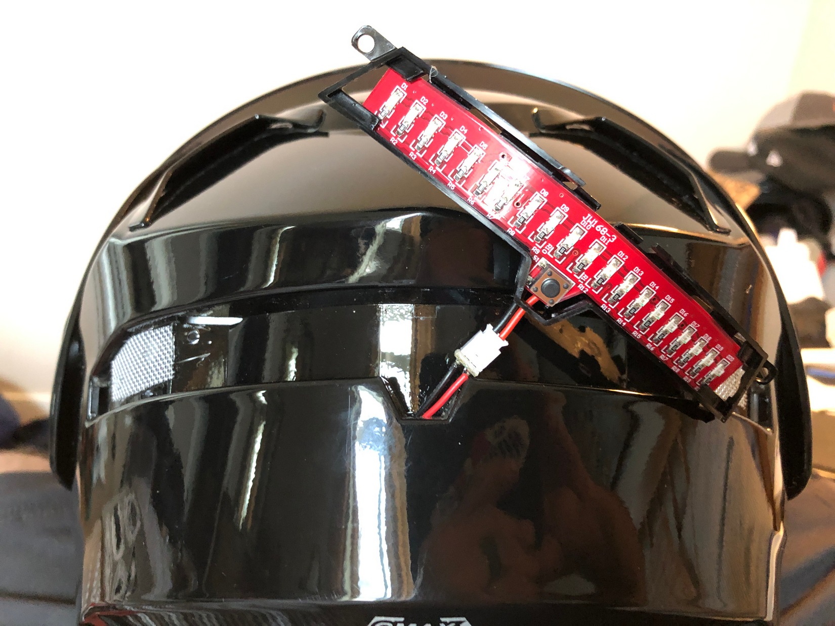 The standard one has five different flashing light patterns and is quite visible even in bright sunlight at the correct angle. At night it lights up like lightning and could easily save riders’ lives. I think this should be standard on all helmets in the name of safety.