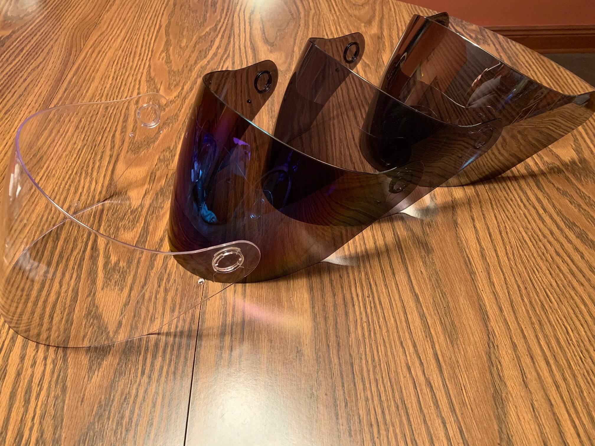 GMAX sent me every optional face shield they make for this helmet including 3 different tinted lenses, 2 double shield lenses and 2 double shield electric lenses for winter use. The clarity and optical quality were amazing on every visor, in fact, the only quality control issue I found was a rough top edge on one of the tinted shields.