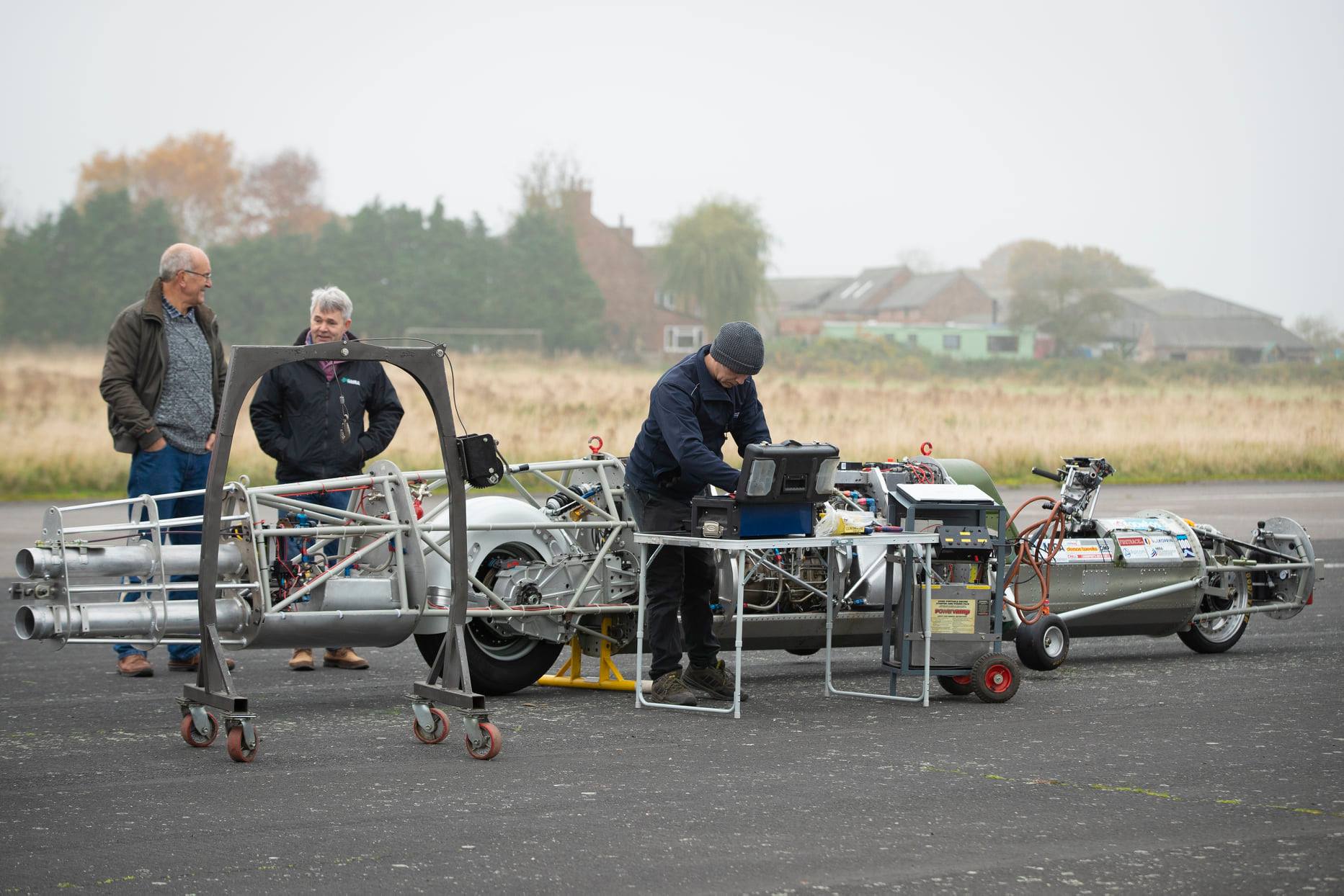 “Day one of the test saw the machine run at 90mph, allowing it to lift off its stabilizers and run on two wheels for the first time and allowing the team to dial-in braking distances & establish baseline readings, whilst carrying out a number of systems and safety checks,” the report comments.