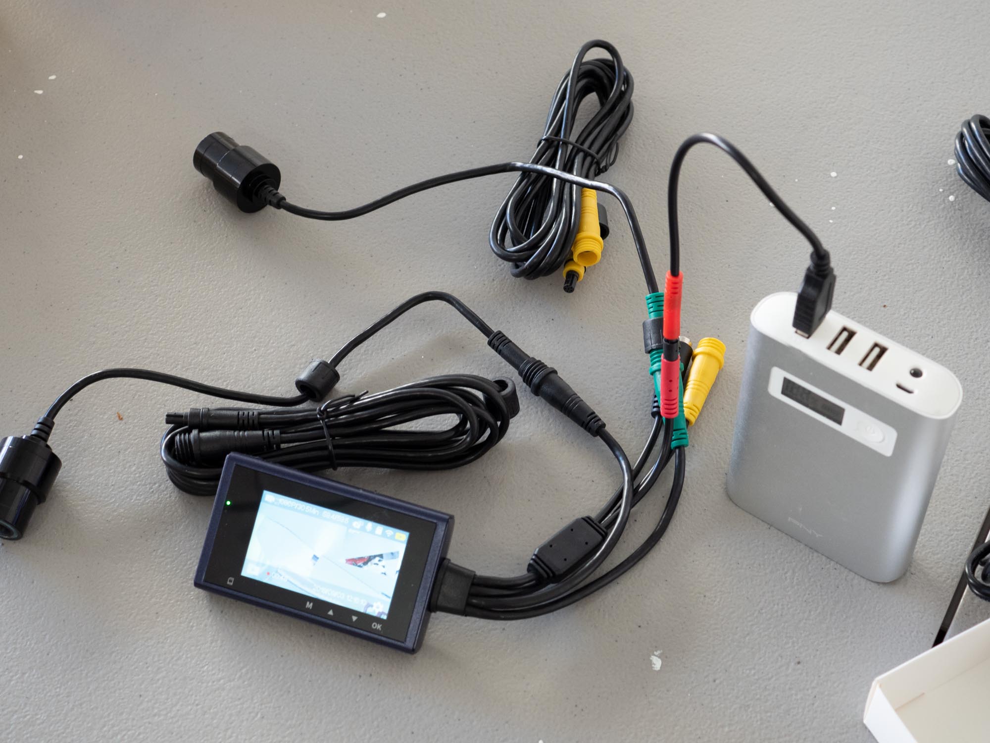 The HaloCam M1 comes with a USB power connector which allows one to power up the system away from the bike. This was very handy for doing the initial set up inside at the table using just a USB power bank.