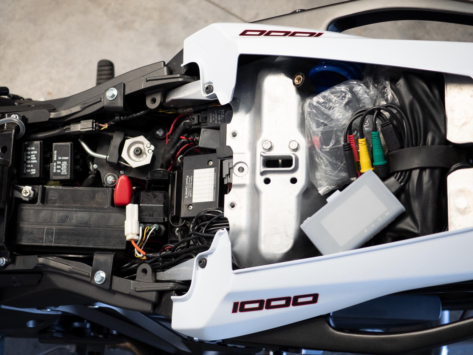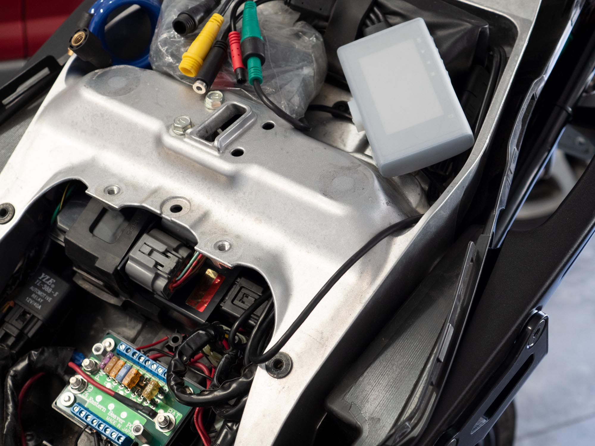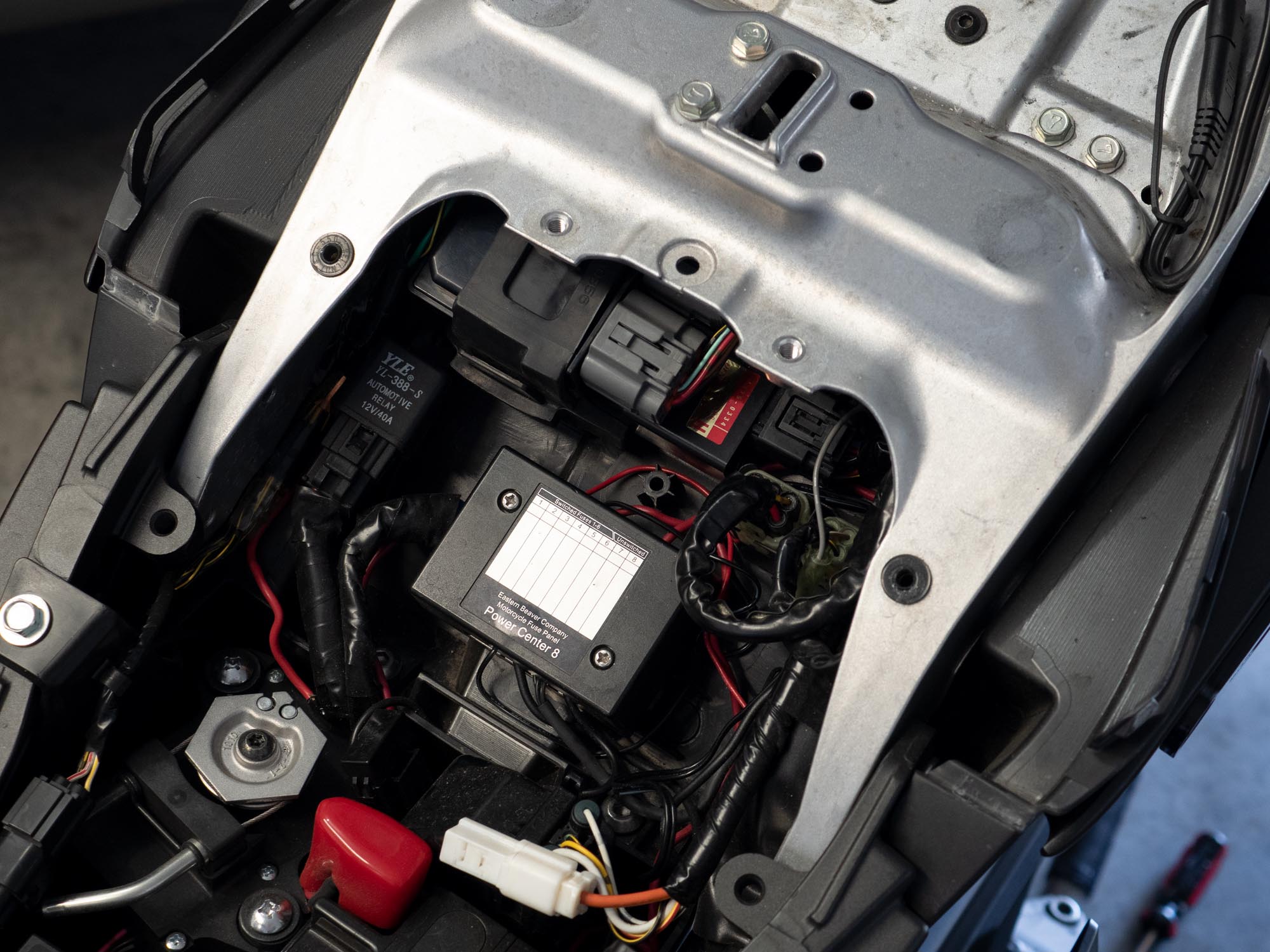One last thing to keep in mind is that the extension cables are quite long and a bit thick. Since they contain several conductors (wires) they are not easily cut and spliced. As such I ended up with a lot of excess wire to bundle up and “store” under the seat. I had sufficient space to tuck this wire bundle on my Ninja 1000 but not every bike will have space like this so be sure to include room for this in your installation if you want to have a “neat” final installation.