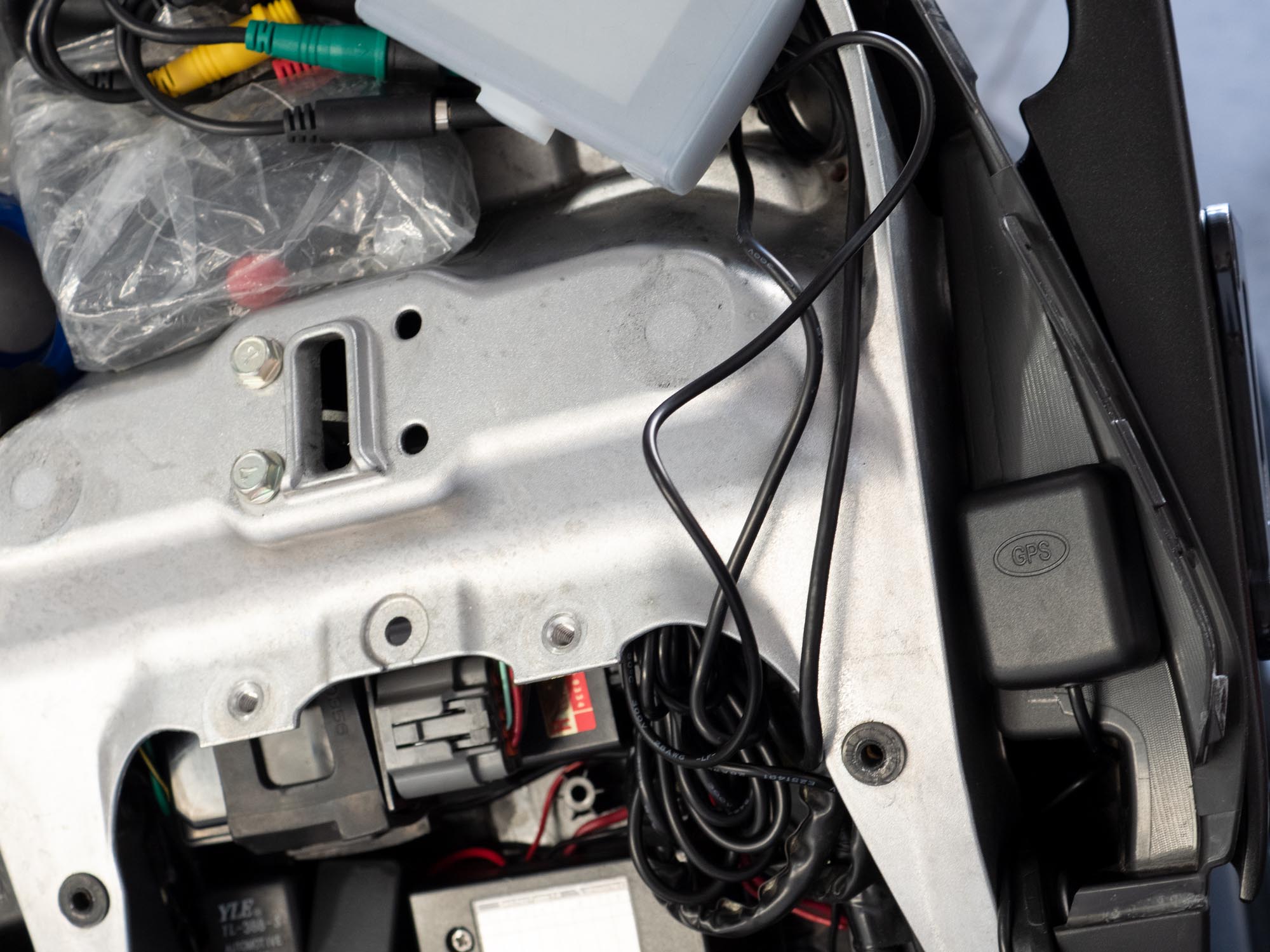 With the cameras and DVR in place, the last piece of the puzzle was to find a good spot for the GPS antenna. Since I had removed some of the rear plastics around the subframe during the wire routing planning, I found a good spot on the left side of the subframe which will be covered by the plastics once they are re-installed.
