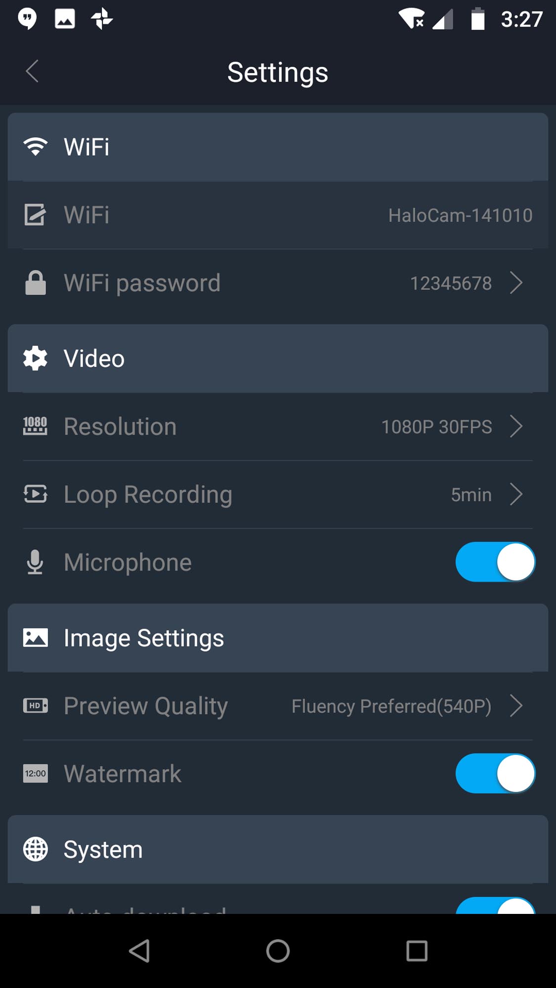There is also the option of signing into the HaloCam sharing service where one can upload their videos. The sharing function has an easy to use editor allowing one to trim the video, remove the audio, and even choose some music from some included options. The videos are shared with their server and can also be sent to Facebook, Twitter, Wechat, and Moments. Strangely there is no YouTube option.