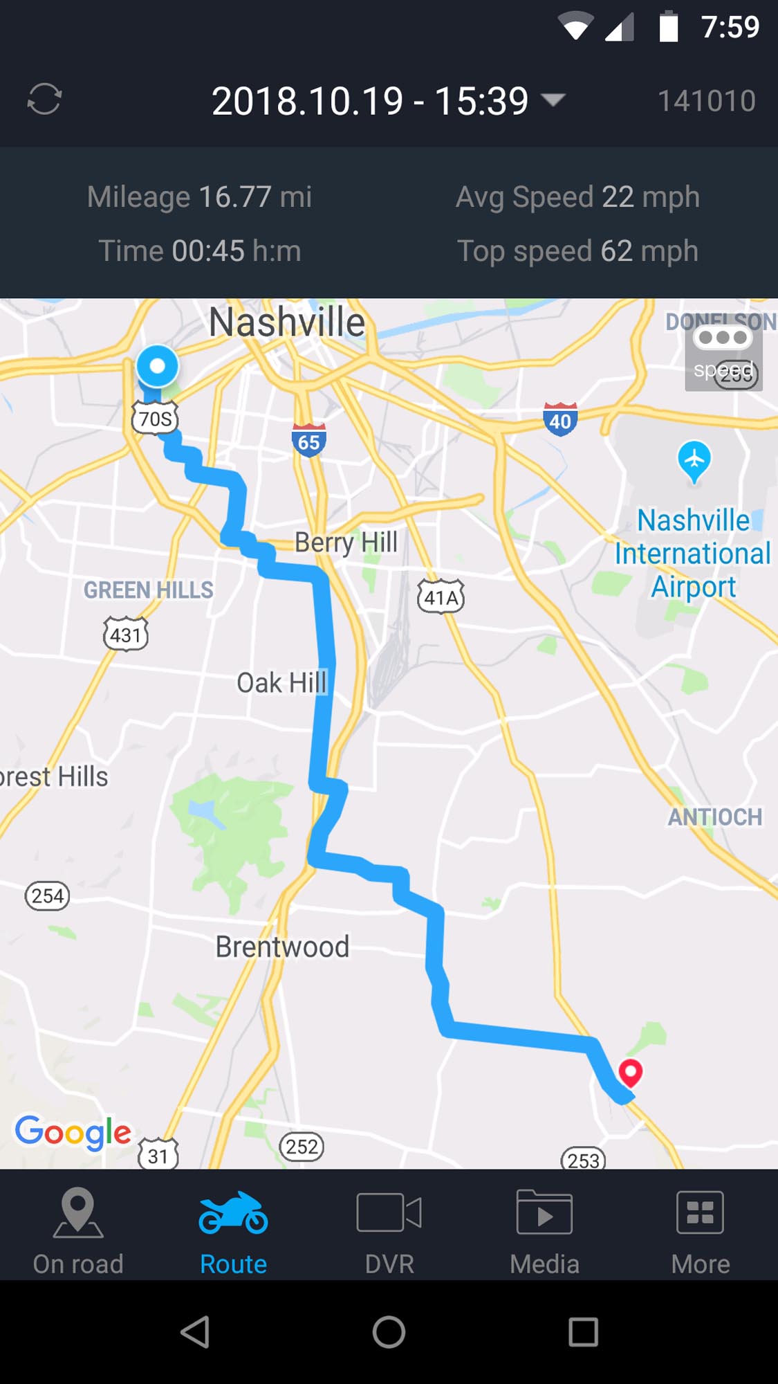 Historical GPS data can be viewed by date on the phone app but be sure you are not connected to the DVR unit or it will not show. It’s a bit counterintuitive but I was able to view the routes I took on the days when the system was running. Furthermore, there is a small “speed” icon that allows one to see various mph data along the route. The only thing I would like to see is a way to download the GPS data to a computer.