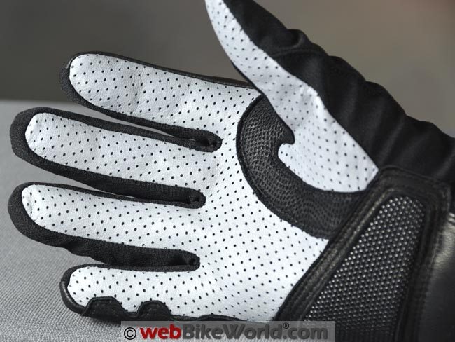 Air doesn’t flow over the palm side of motorcycle gloves when you’re riding, because that’s the side that (hopefully) is on the grips.