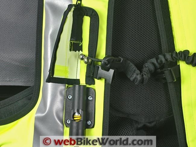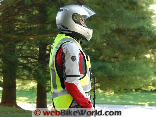 And once the cord is attached to the bike, the rider simply re-connects the vest with a quick-release snap.