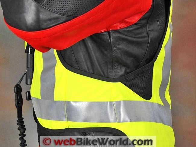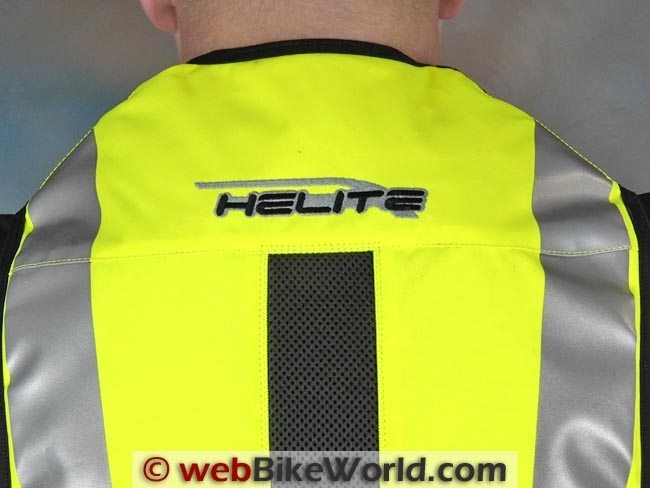 The Helite Airnest vest is available in all-black or the high-visibility yellow version shown here, which includes a large amount of highly retro-reflective heat-sealed tape on the front and back (see photos below).