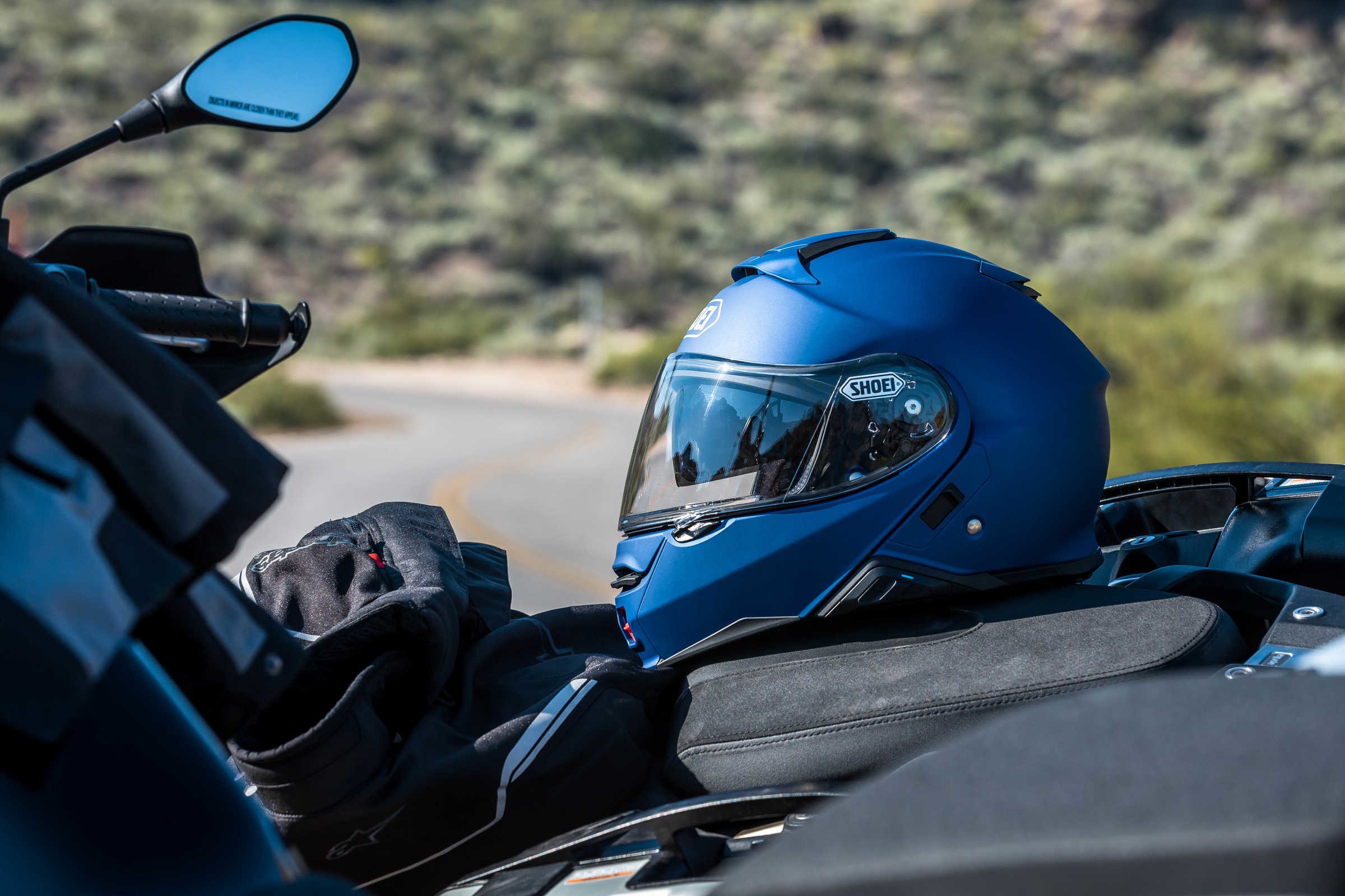 With respect to Snell: I don’t think they certify – or maybe even test – any modular helmets. After talking to a representative of Snell at the touring motorcycle show here in the US I recall something about the modular mechanism reducing space for safety materials on the side; something about the lack of a test to predict resistance of the chin bar coming up in a crash. I could be missing some of the reasons or mis-remembering, but its lack of certification doesn’t concern me at all. At the end of the day, my faith is in Shoei.