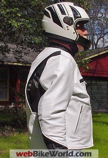 I decided on white leather for the main panels for two reasons. One was to be visible and two to reflect as much solar heating as possible. I also had the jacket trimmed in black leather with some of the panels perforated.