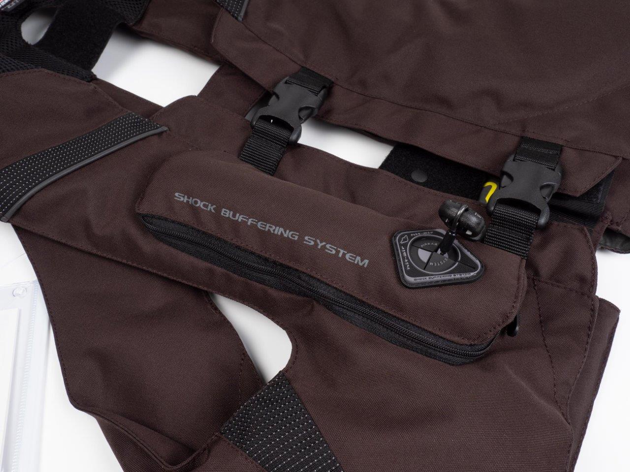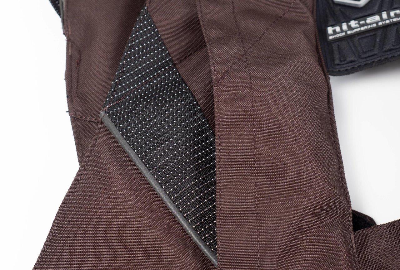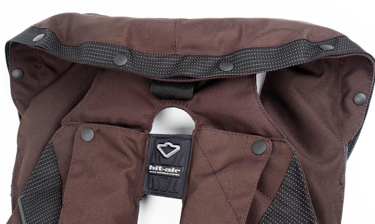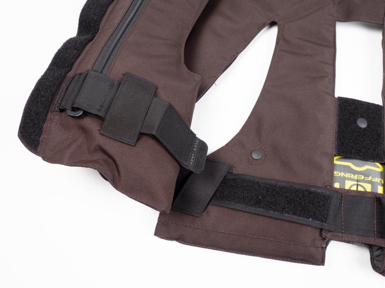 The MLV-C has provisions for adding additional impact protection in the form of back, chest, and side protectors. Hook and loop fastener is in place at the chest and the back for attaching Hit-Air’s protectors and the side impact pieces attach to the adjustment strap for the main lower buckle.