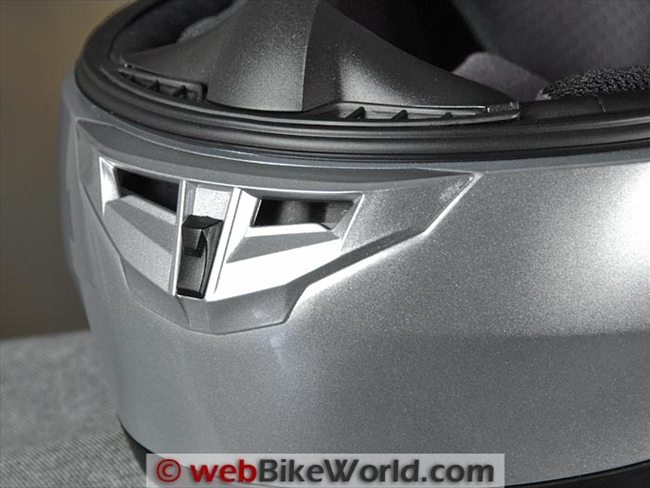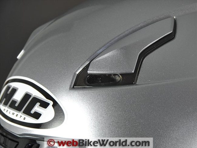 The vent on the CL-16 is one of the cheap single black plastic scoop types with the old-style HJC tiny rocker switch. It actually works pretty well also, but it can create some whistling noises, especially if you’re riding behind a windscreen.