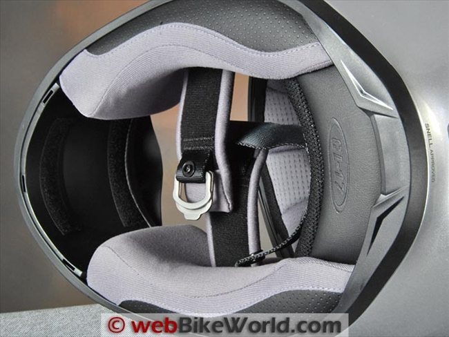 The padding under the chin strap is very nice and thick, long and comfortable and better than any Arai helmet we’ve reviewed (as one example).