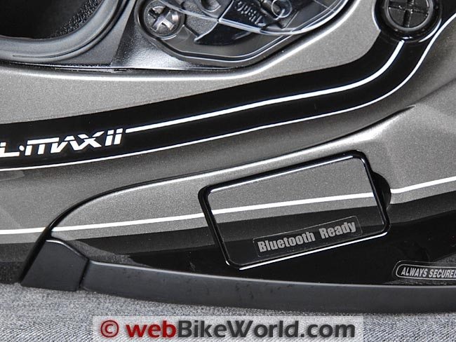 The CL-Max II has an external covered recess for the HJC Chatterbox XBi-2H Bluetooth intercom, which is specifically designed to fit the HJC IS-Max BT, CL-Max II and HJC Sy-Max III (review) only.