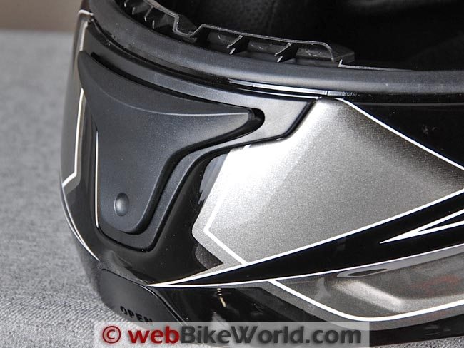 The CL-Max II has a nice, big chin vent that functions via a rocker panel in the front. It’s easy to find when wearing gloves but it opens only a narrow slot along the top that directs a small amount of air along the top of the chin bar and on to the back of the face shield.