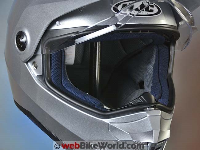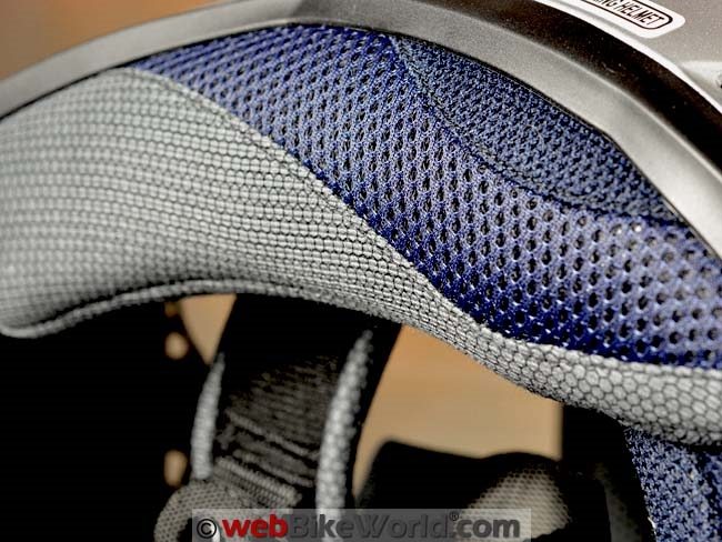 The DS-X1 has a “Neutral” to “Slightly Round” shape (as defined in the webBikeWorld Motorcycle Helmet FAQ) on the top half but a tighter “Slightly Narrow” shape along the sides, due to the thick cheek pads.