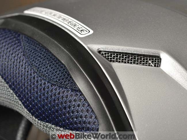 Flanking the center chin vent are two mesh vents that also flow air into the helmet, directly through the chin bar via 6 small holes (3 on each side).