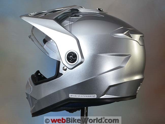 Actually, it’s one of the better designs for a DS peak on any of the dual-sport helmets we’ve reviewed, because the air flows smoothly through it and even with a cross-wind, I don’t notice any unusual amounts of lift.