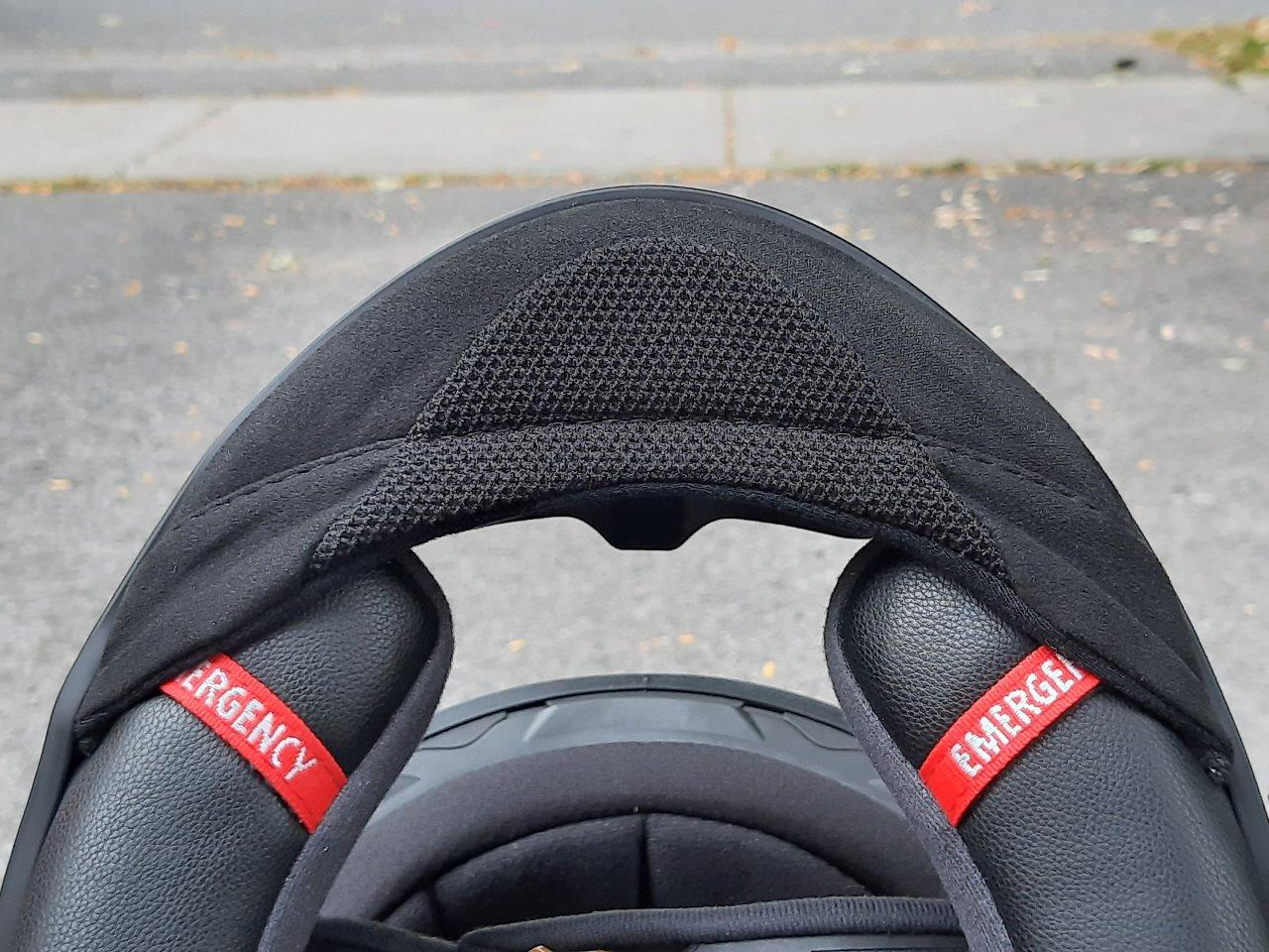 Neck Roll/Head Piece Combination – this one-piece assembly fits in along the brow section of the eye-port insert component and secures at the back of the head with two snaps. Like the cheek pads, this piece is well made, using the same comfortable and conforming combination of foam and brushed material, although not as thick as the side pieces.