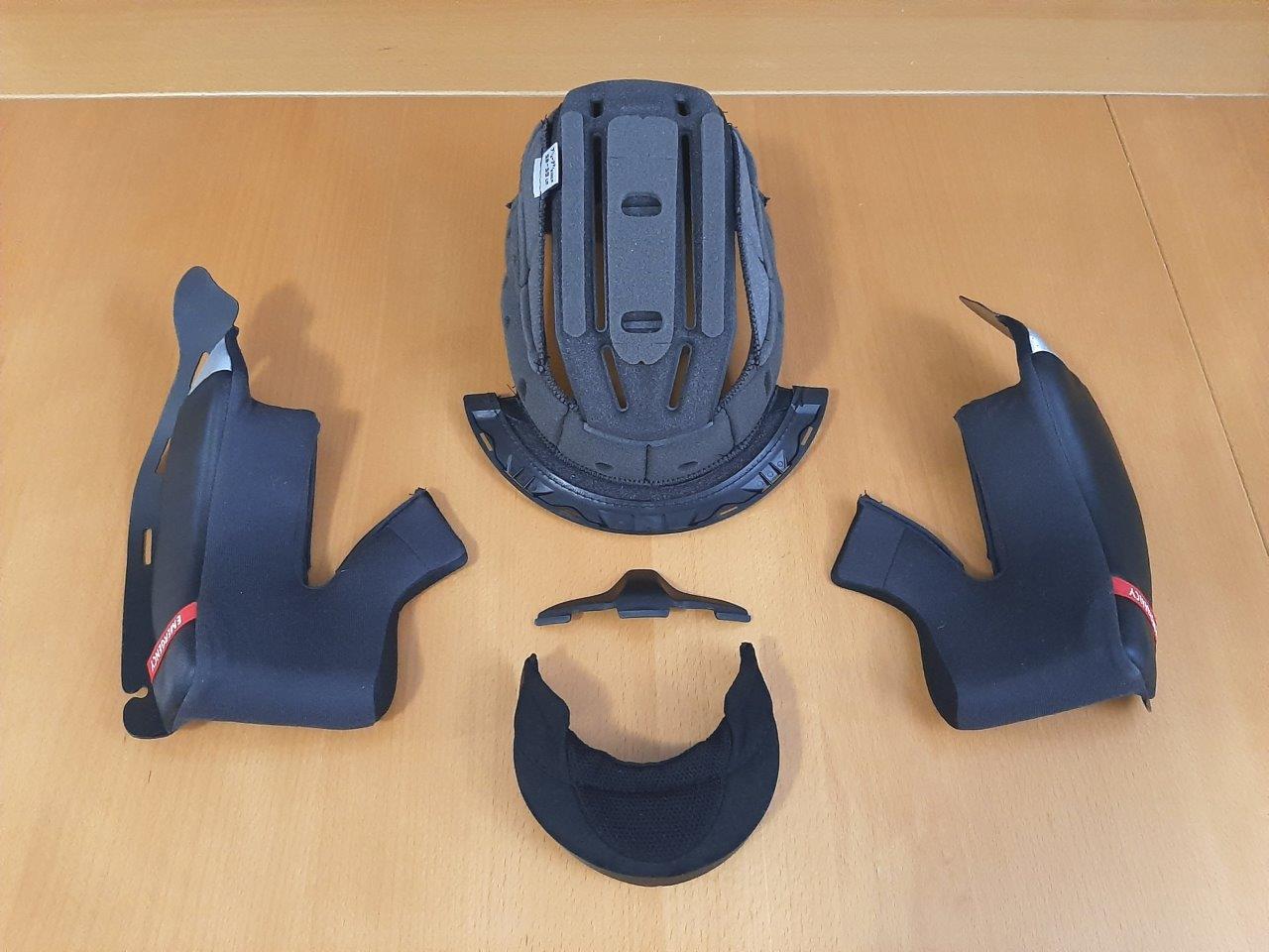 Chin Curtain – this small piece, that many users (unfortunately) remove immediately with first use, is a small padded stretch section with plastic edging; it simply snaps into place between the outer shell and the inner liner piece.