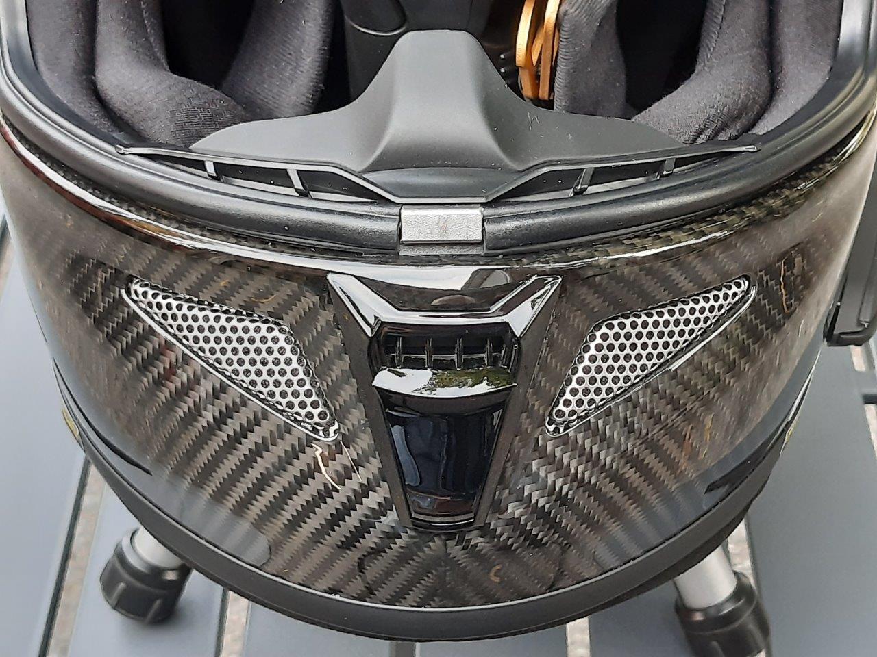 In this instance, for this helmet, the only available ‘option’ is the impressive ‘carbon’ finish – perfectly overlaid and sealed with a touch clear coat finish.