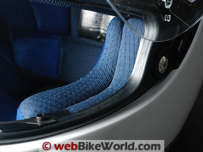 The liner fabric used in the HJC is smoother but not as plush as the fabric used in the Qwest, and the padding doesn’t feel as thick either.